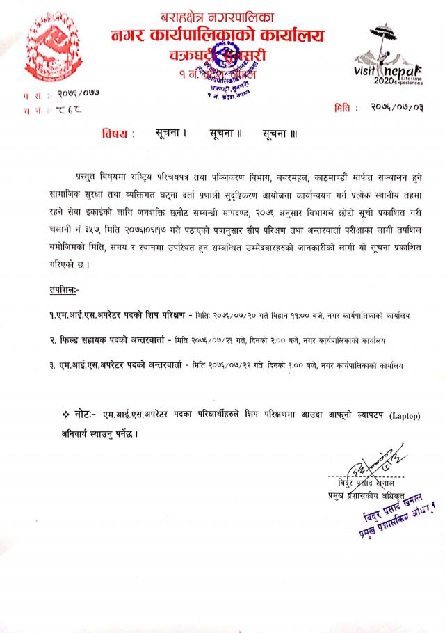» MIS अपरेटर तथा फिल्ड सहायक को शिप परिक्षण तथा अन्तवार्ता सम्बन्धि सूचना
