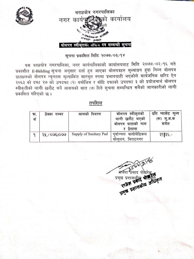 Sanitery pad को आसय सम्बन्धि सूचना