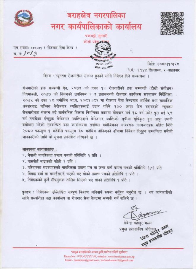 न्यूनतम रोजगारीमा संलग्नको लागि सूचना